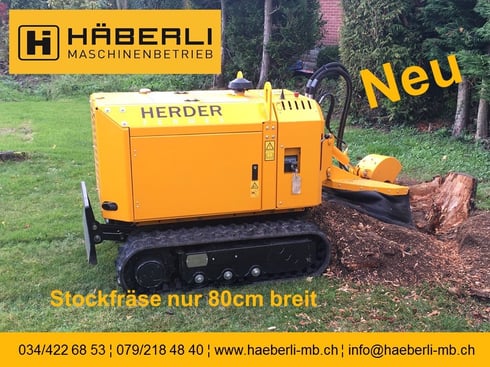 Neu im Angebot haben wir das Wurzelstockfräsen. Die Maschine ist dank ihrer geringen Breite von nur 80cm bestens geeignet für die Arbeit in Gärten.